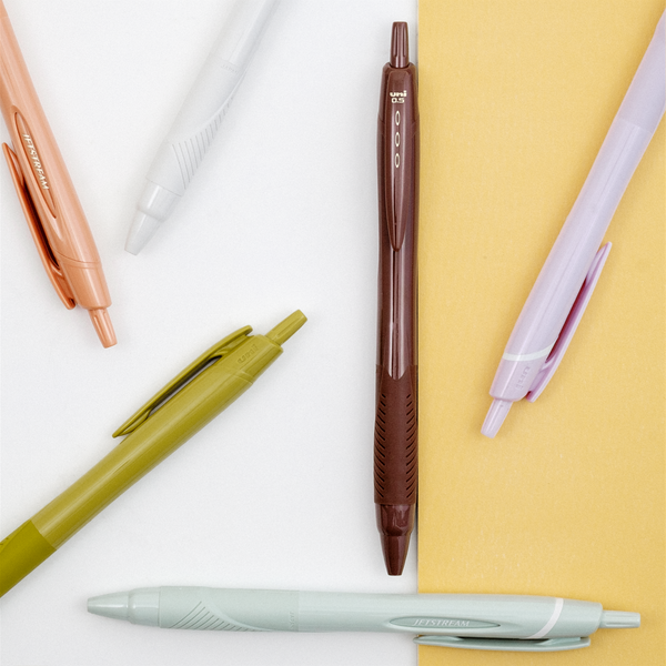 Uni-ball Mitsubishi Jet-Stream gel ink pens are a staple of offices and homes in Japan. Its quick-drying ink runs dark and smoothly without pressure — like a rollerball but with a far finer tip. Each pen in this collection is retractable and features Mitsubishi's Lite Touch black ink replaceable cartridge for an even smoother 0.5mm line. Perfect for writing and even drawing.