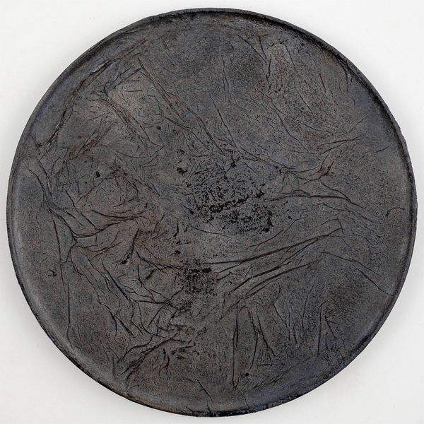 A washi Japanese paper underlayer is applied in an irregular, expressive pattern, creating a subtle, organic topography beneath the lacquer. Multiple coats of urushi build depth and tone for understated drama that bridges Japanese traditional lacquerware with a sculptural, contemporary sensibility.