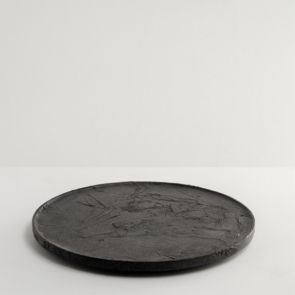 Solmu Puut’s Lacquer Plate A enhances the rich elegance of Yamazakura (Wild Cherry wood) from Yakushima with an unusual, tactile lacquer technique. Shaped from chainsaw-cut rounds of fallen cherry wood, each plate is turned on the wood lathe before undergoing a meticulous urushi Japanese lacquer process.